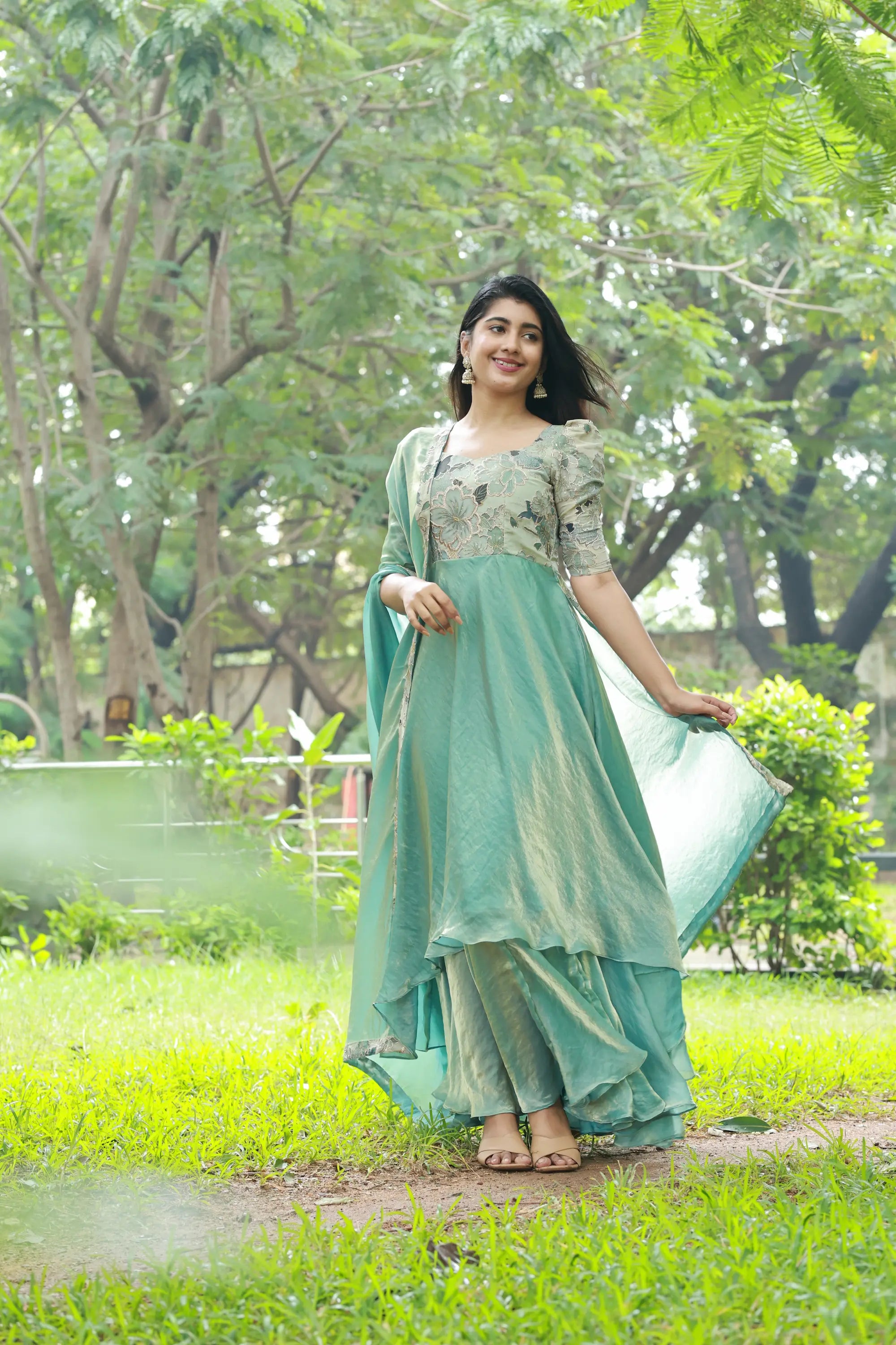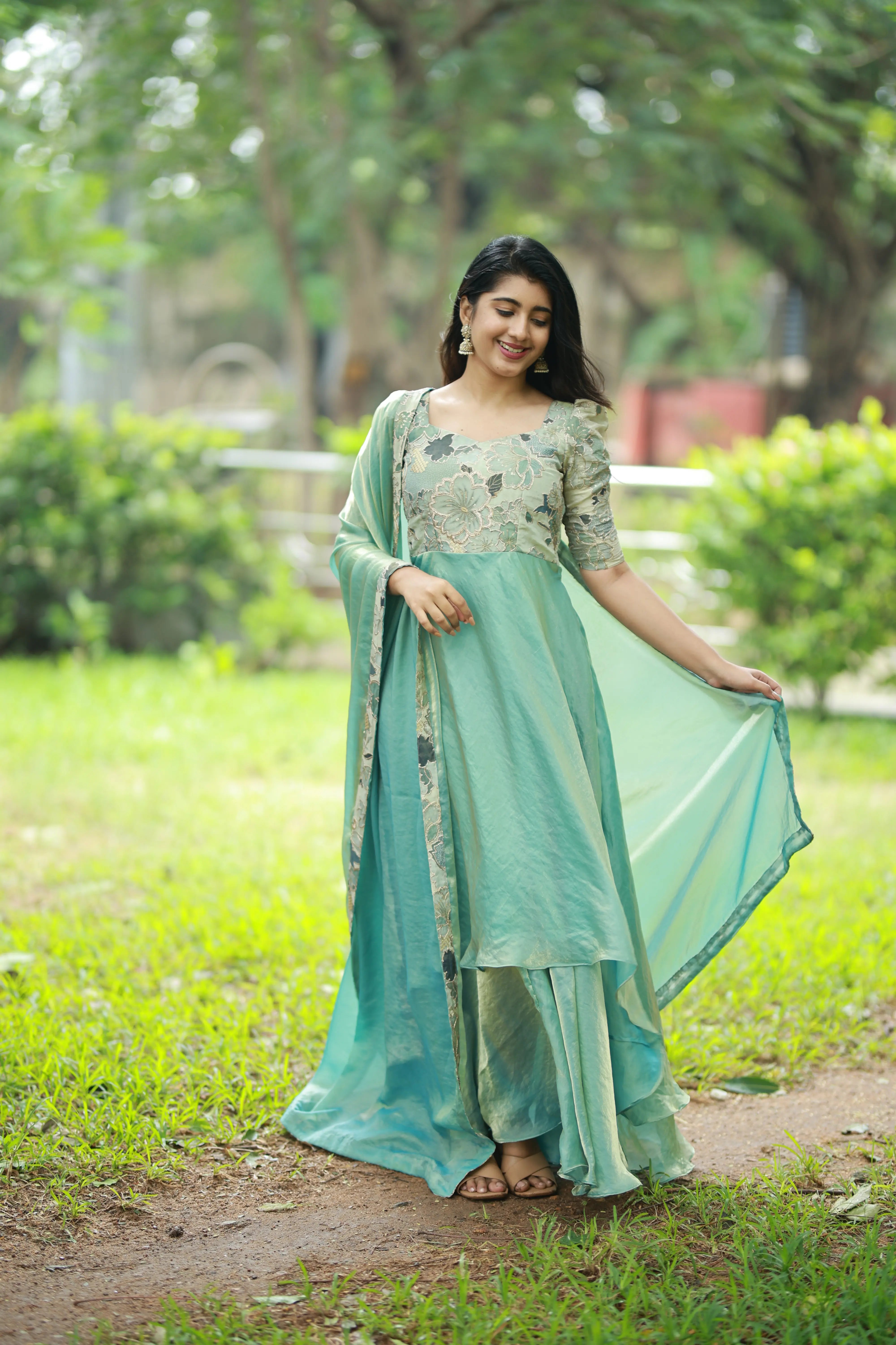 | Design | Flowy layered flares in a high-low pattern for a twirl-worthy silhouette |