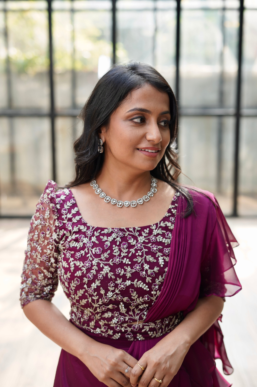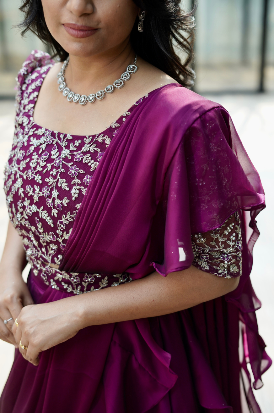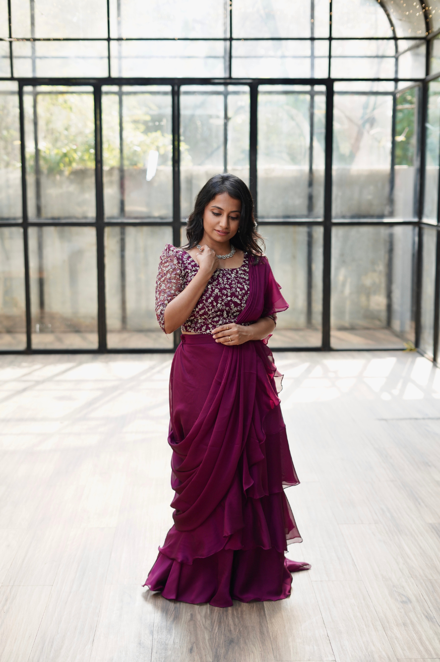 | Work Includes | 1 Top, 1 Three-Layered Skirt, 1 Draped Ruffle Dupatta |