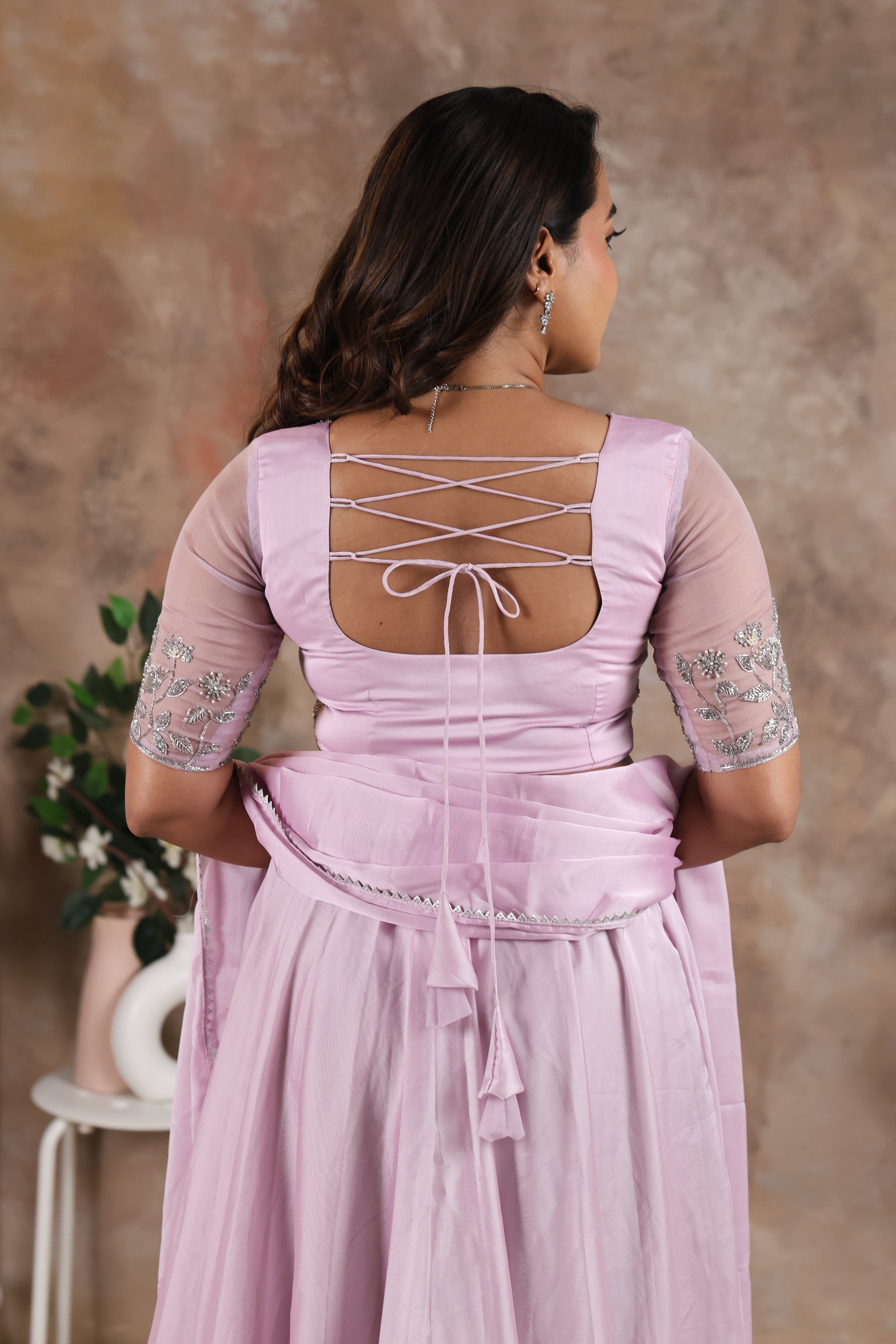 | Work Includes | Hand embroidery with silver sequins and beads |