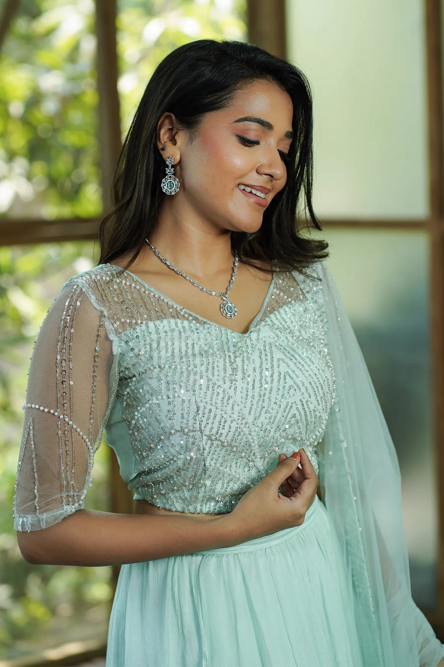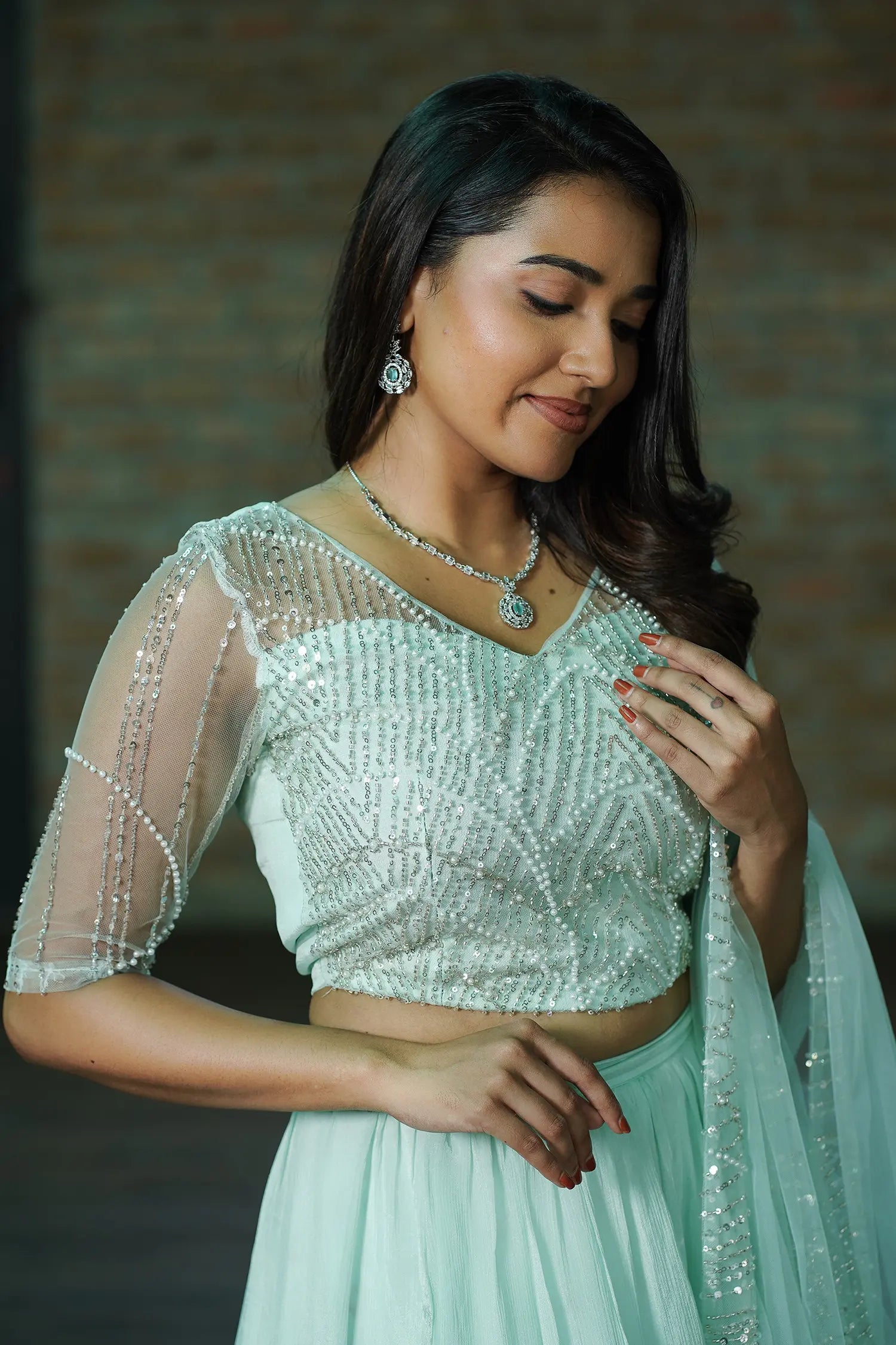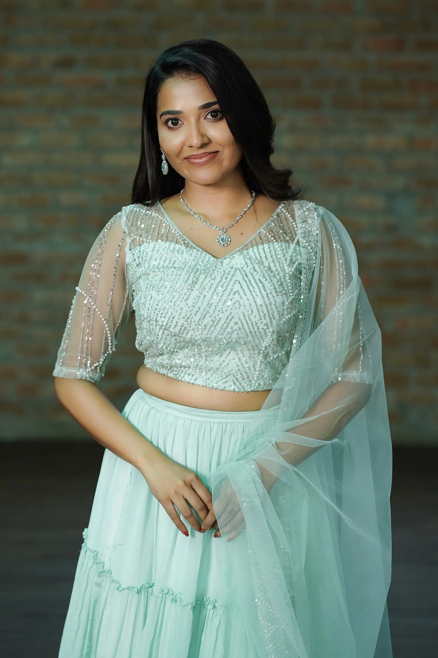 | Fabric | Top & Dupatta: Pearl-Embroidered Net Skirt: Chinon |