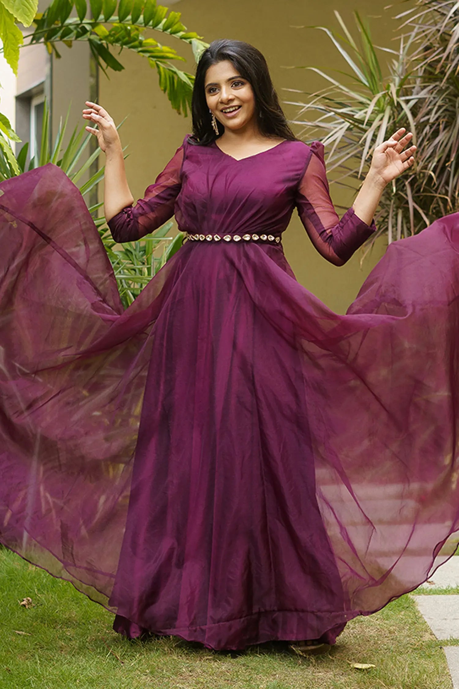 | Description | An elegant party wear dress crafted in tissue organza with puff sleeves, a flared silhouette, and a stone-studded belt for added charm. Perfect for festive evenings and special celebrations. |