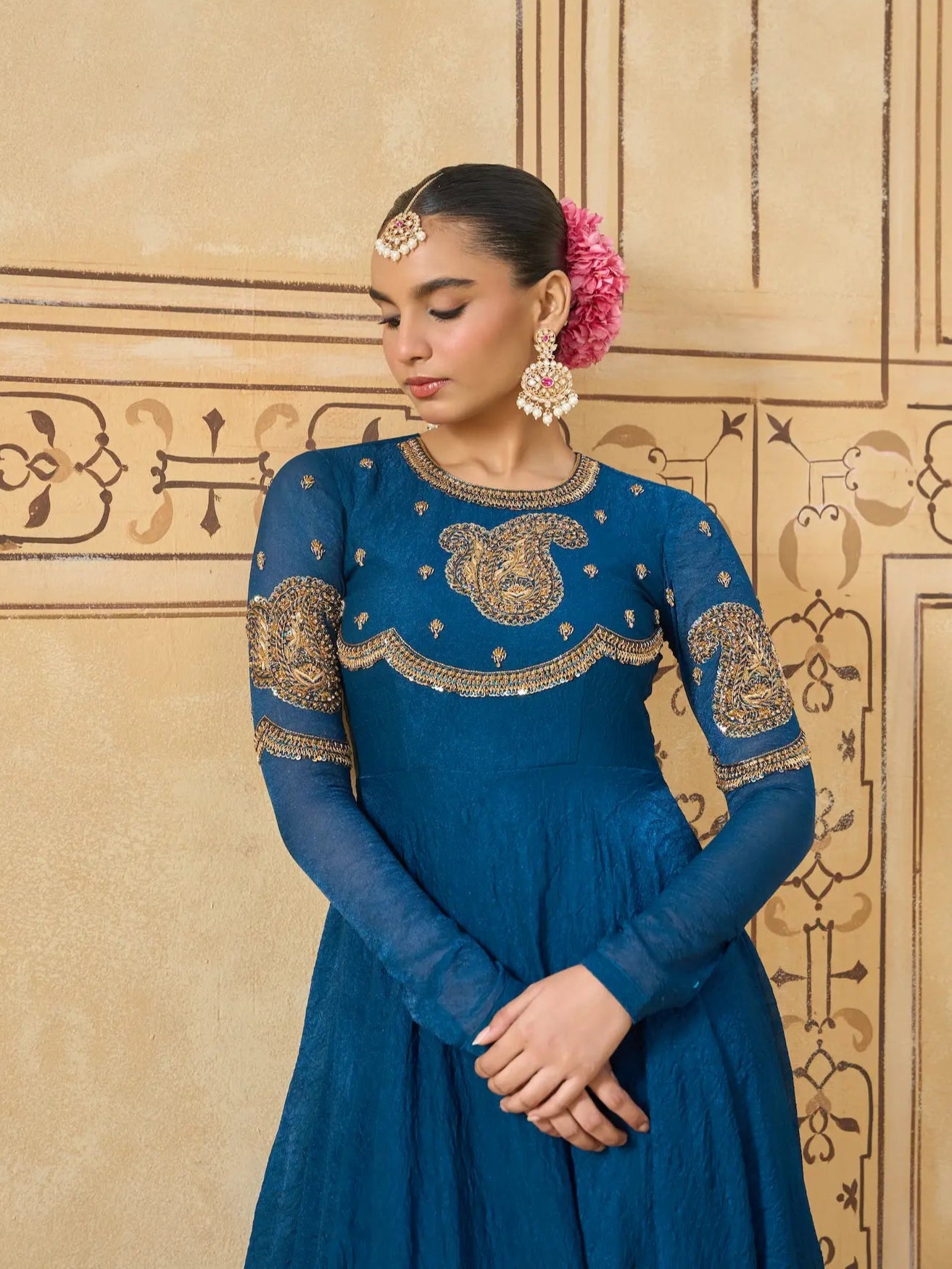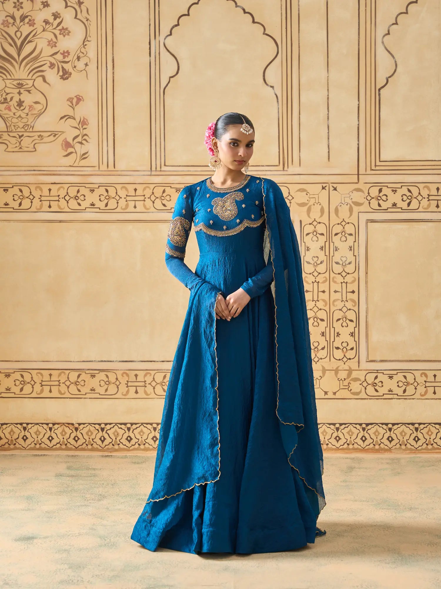 | Work Includes | Paisley motifs with thread and cutdana embroidery |