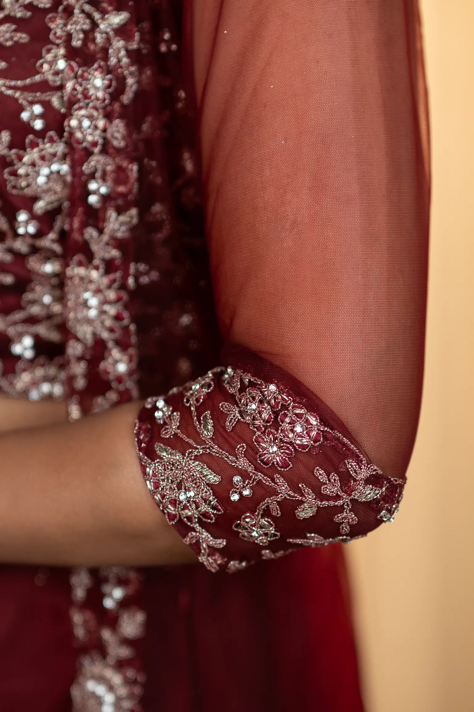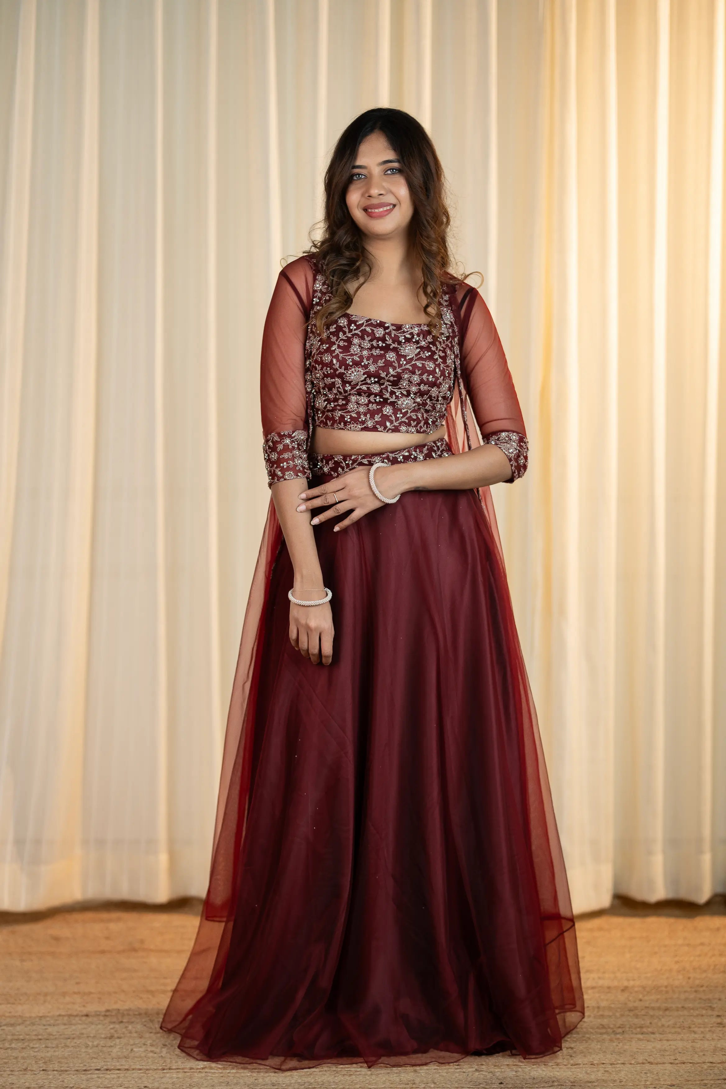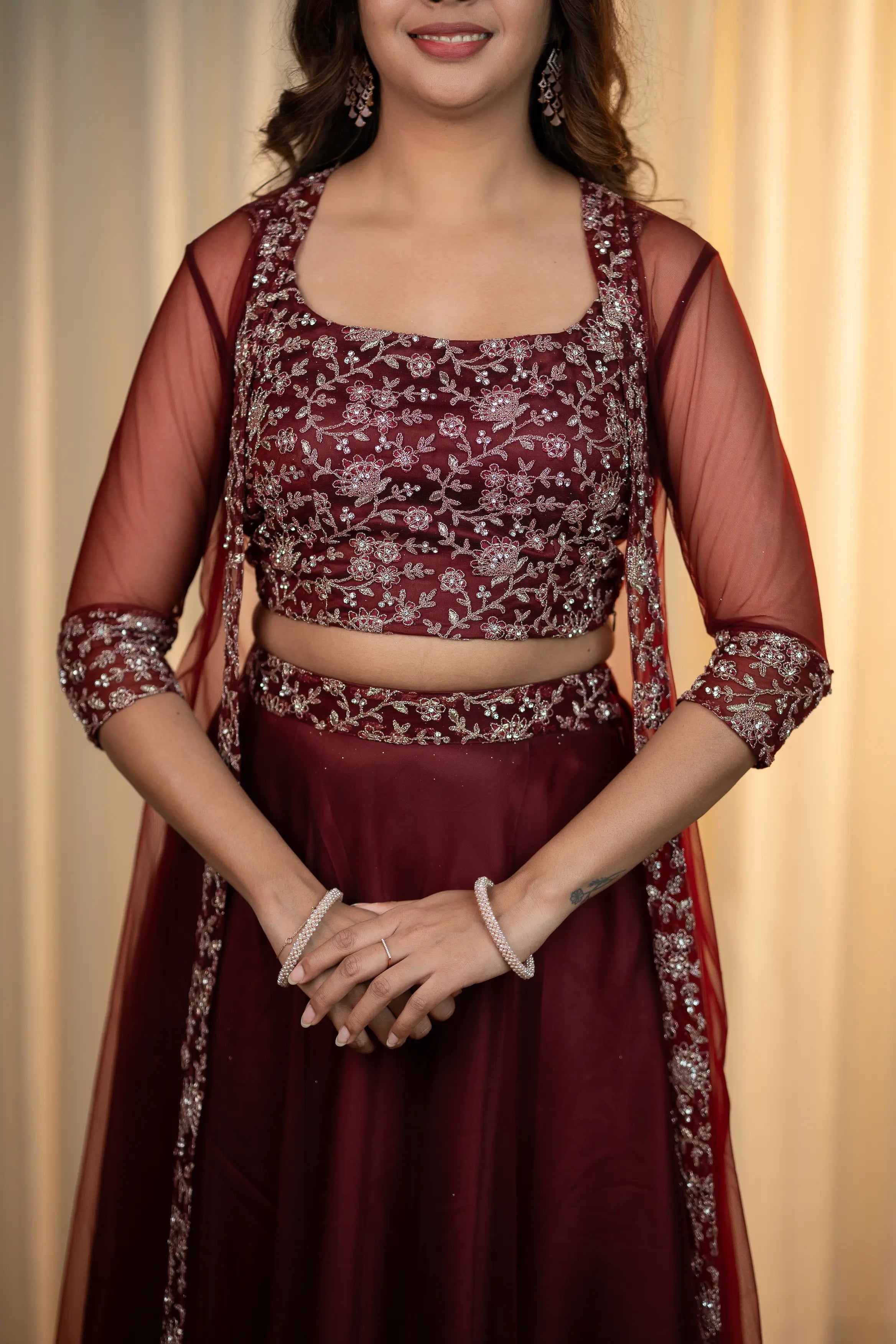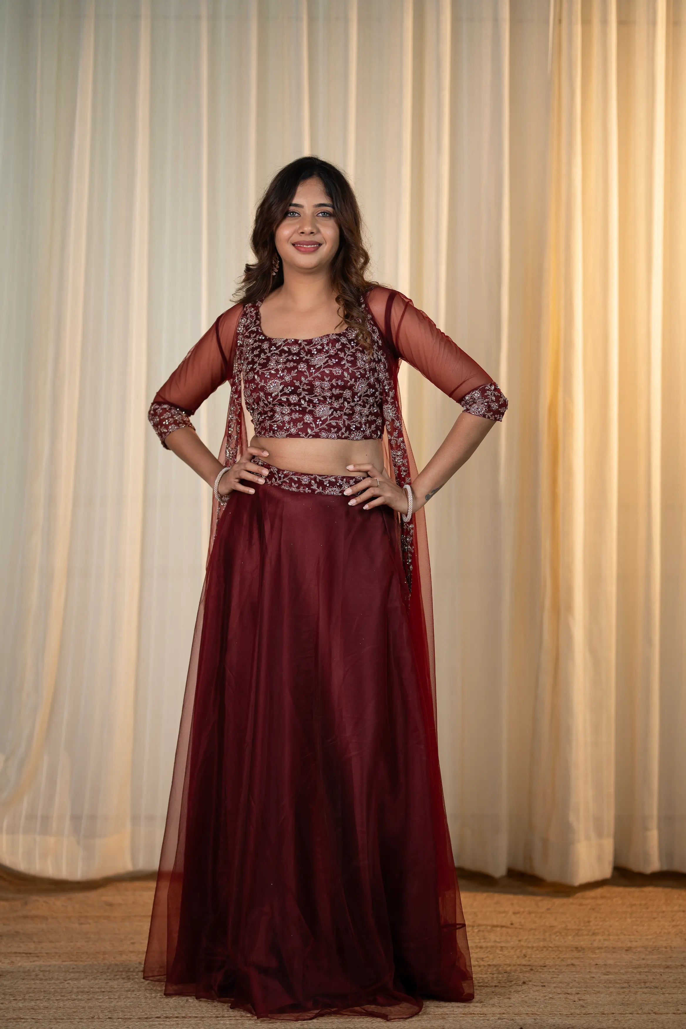 | Fabric | Top: Embroidered Net Skirt: Flowy Net with Satin Lining Shrug: Net |