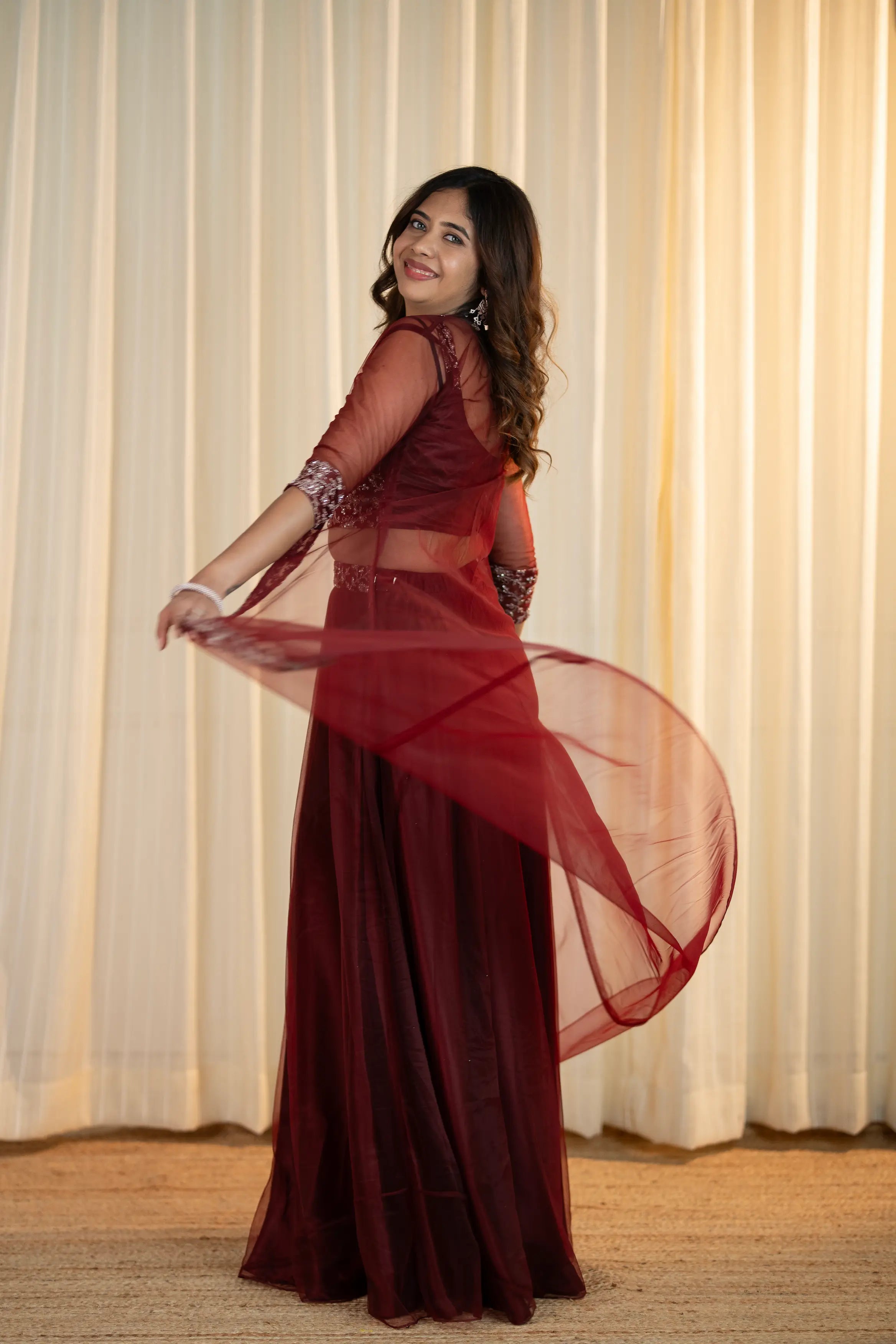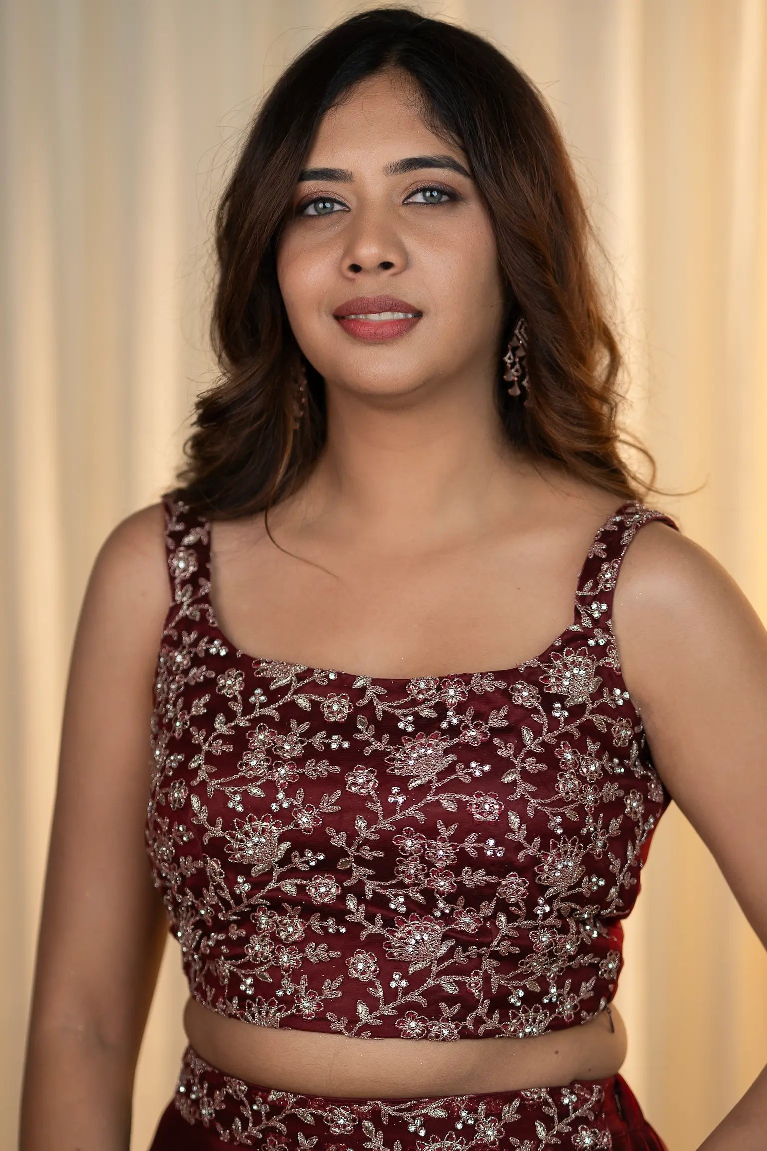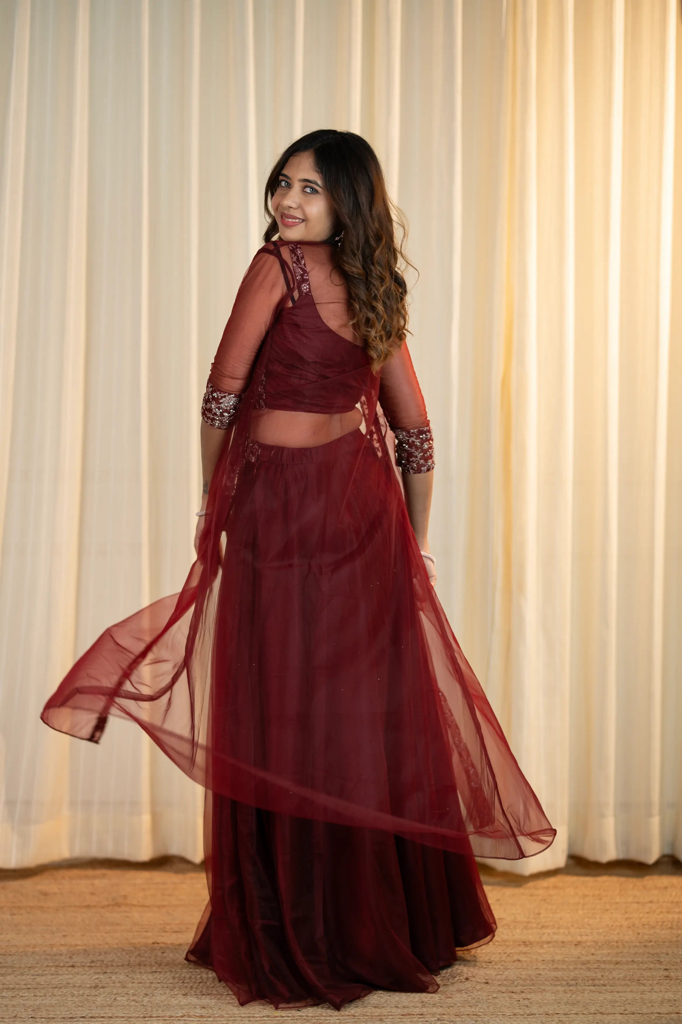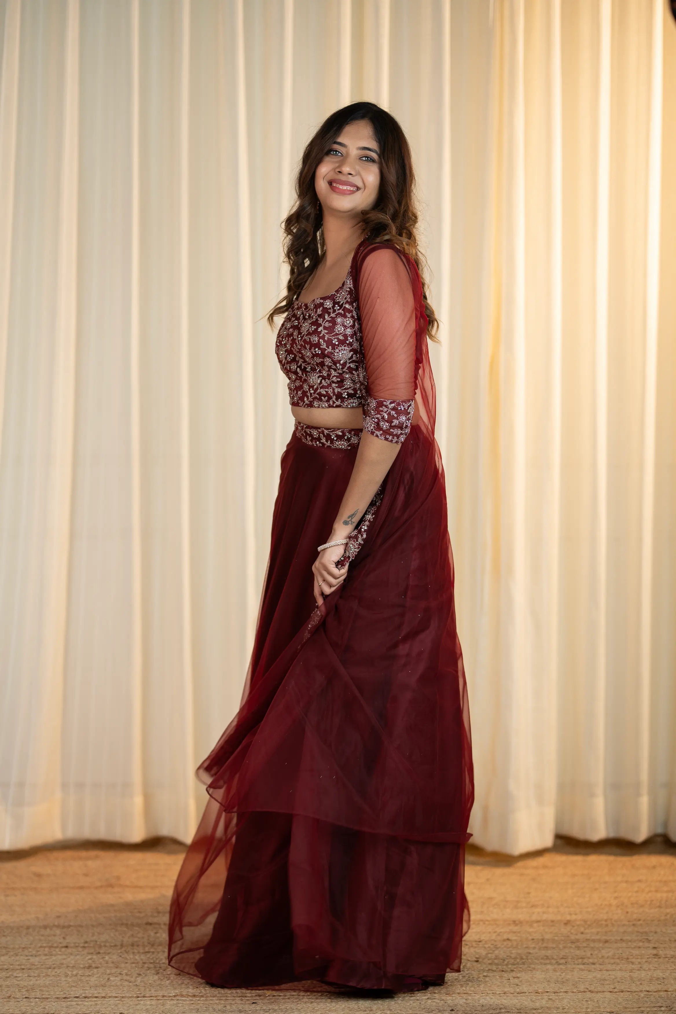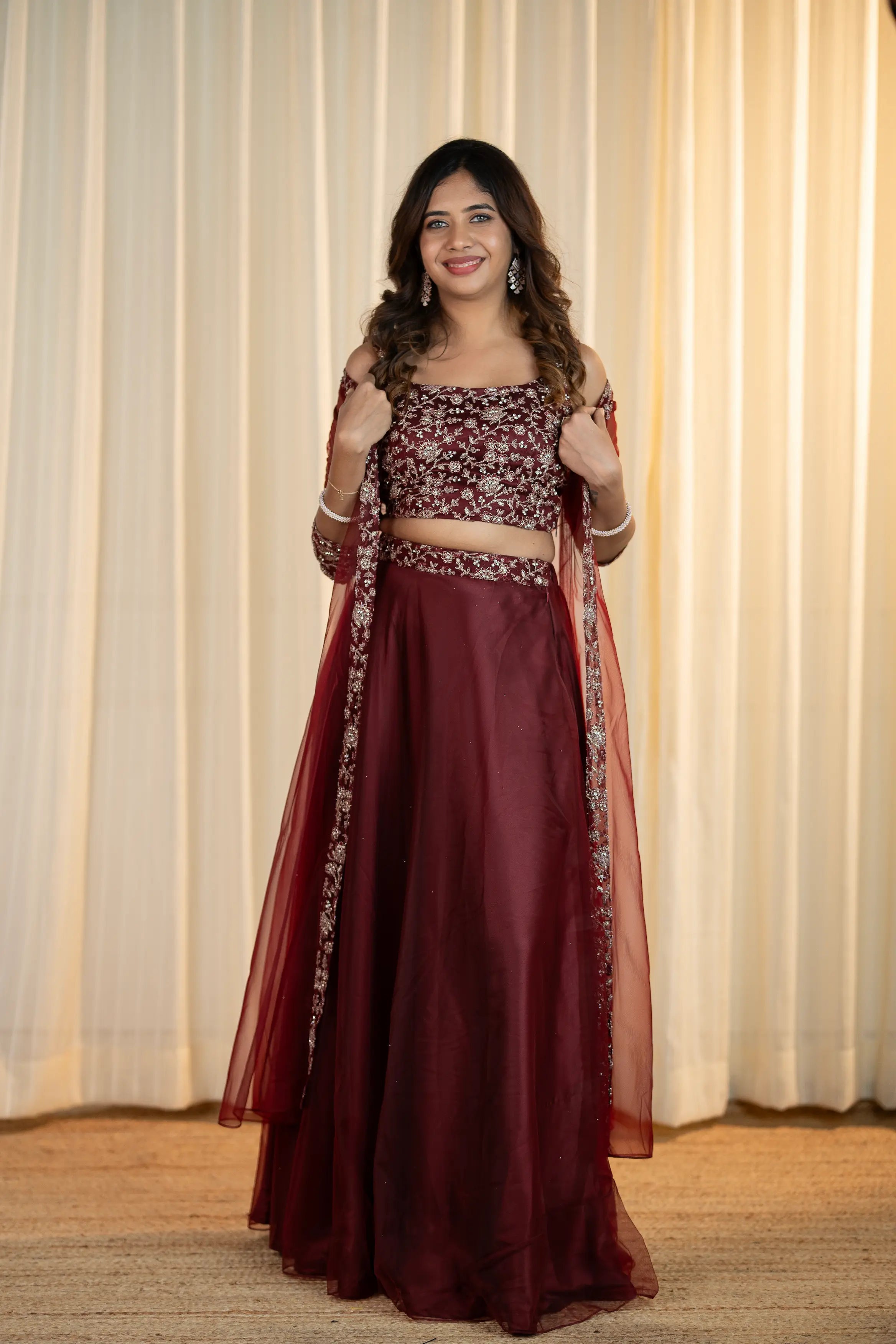 | Fabric | Top: Embroidered Net Skirt: Flowy Net with Satin Lining Shrug: Net |