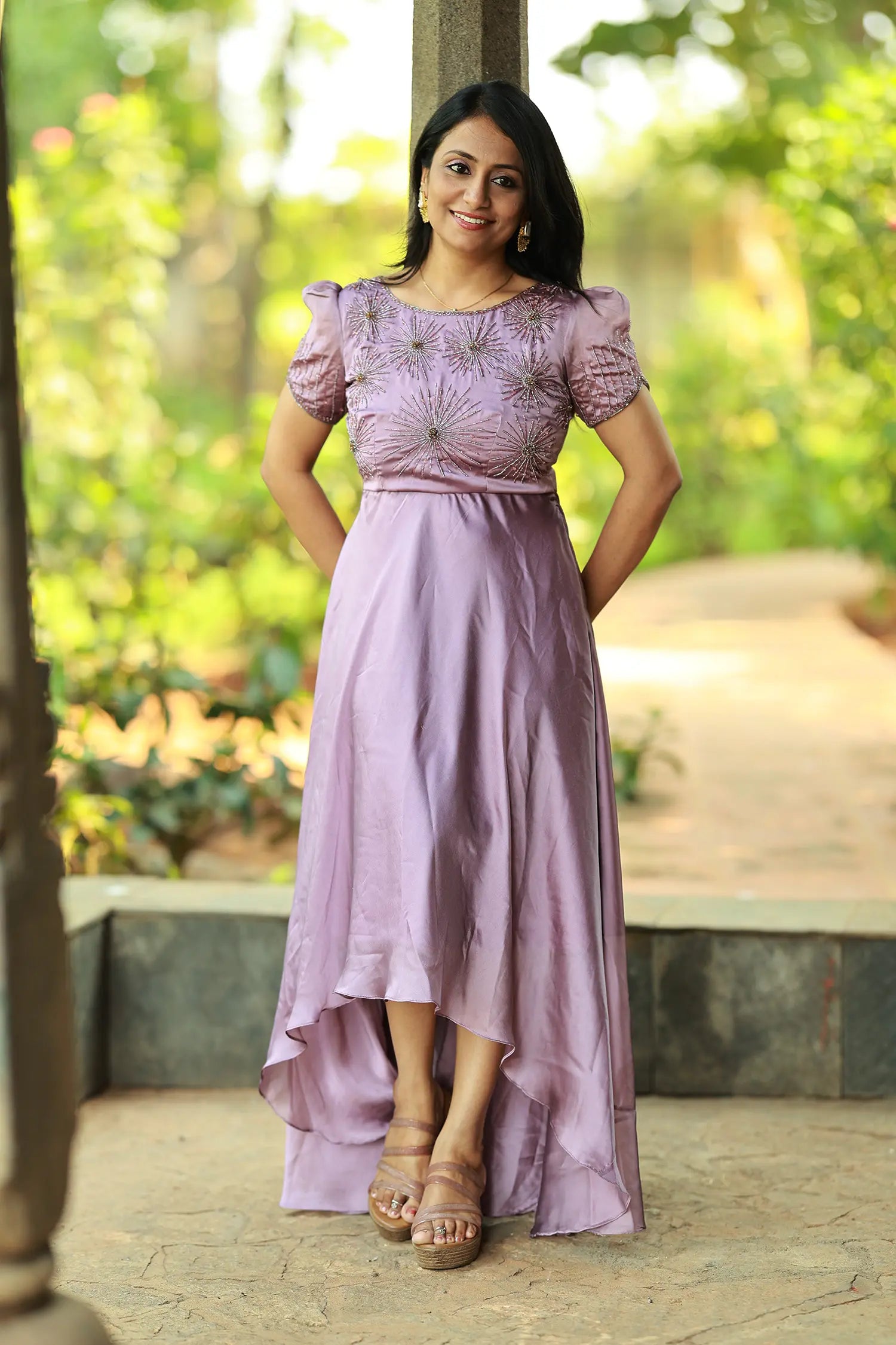 | Description | High-low gown featuring a handworked yoke. Designed for a graceful and flowing silhouette, this gown blends intricate craftsmanship with contemporary elegance. |