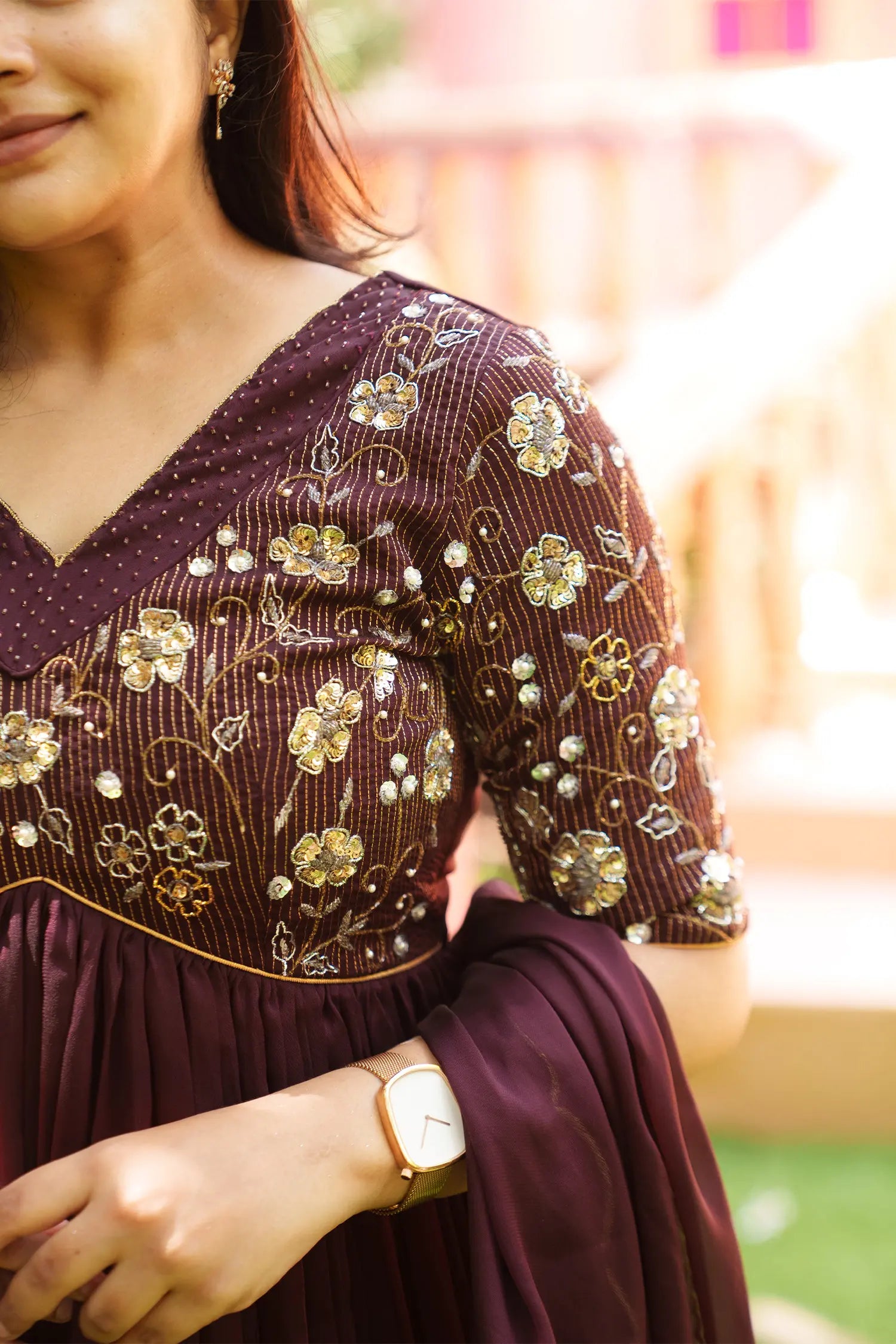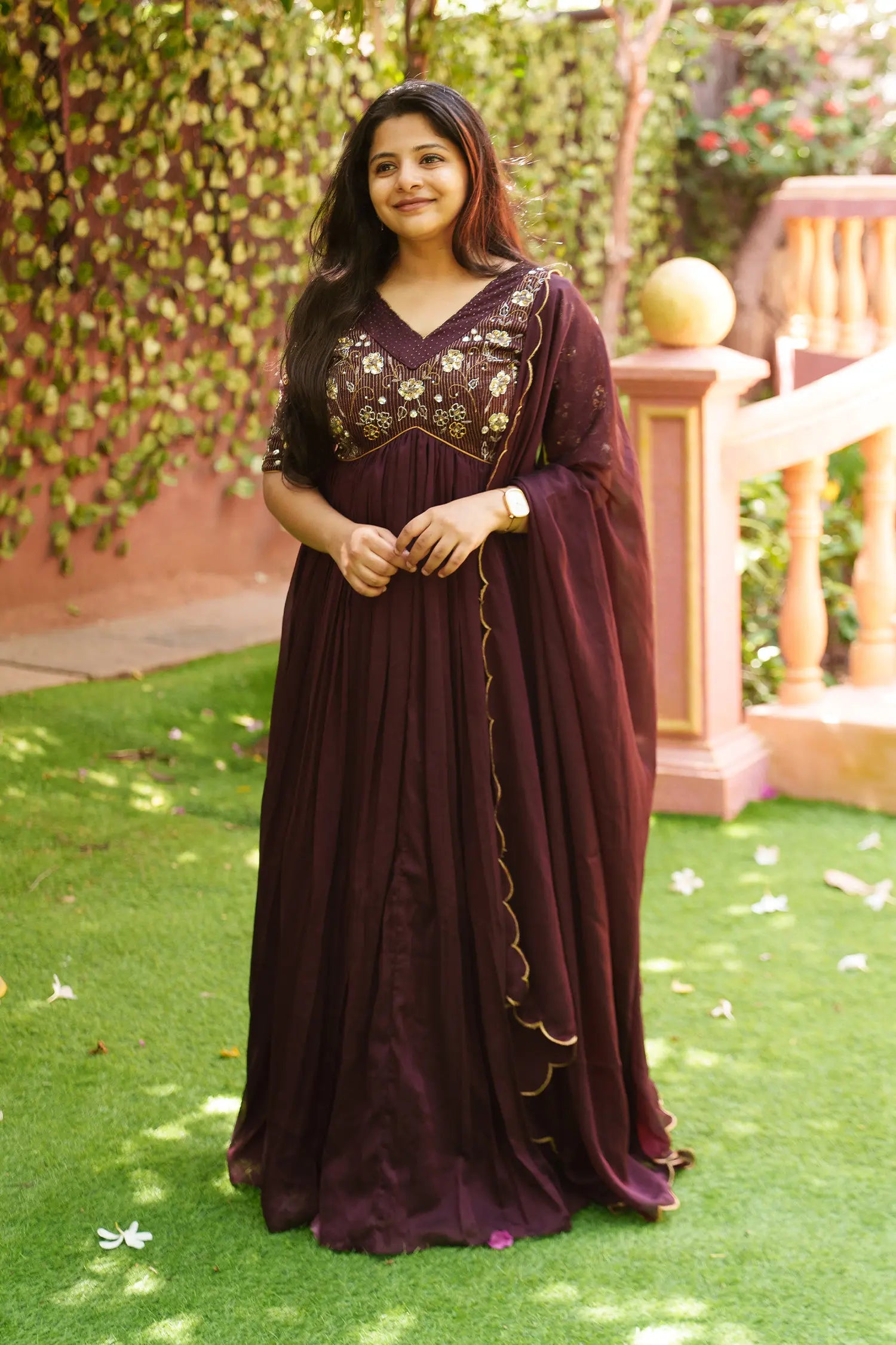 | Style | Alia-cut Anarkali with handwork embroidery |