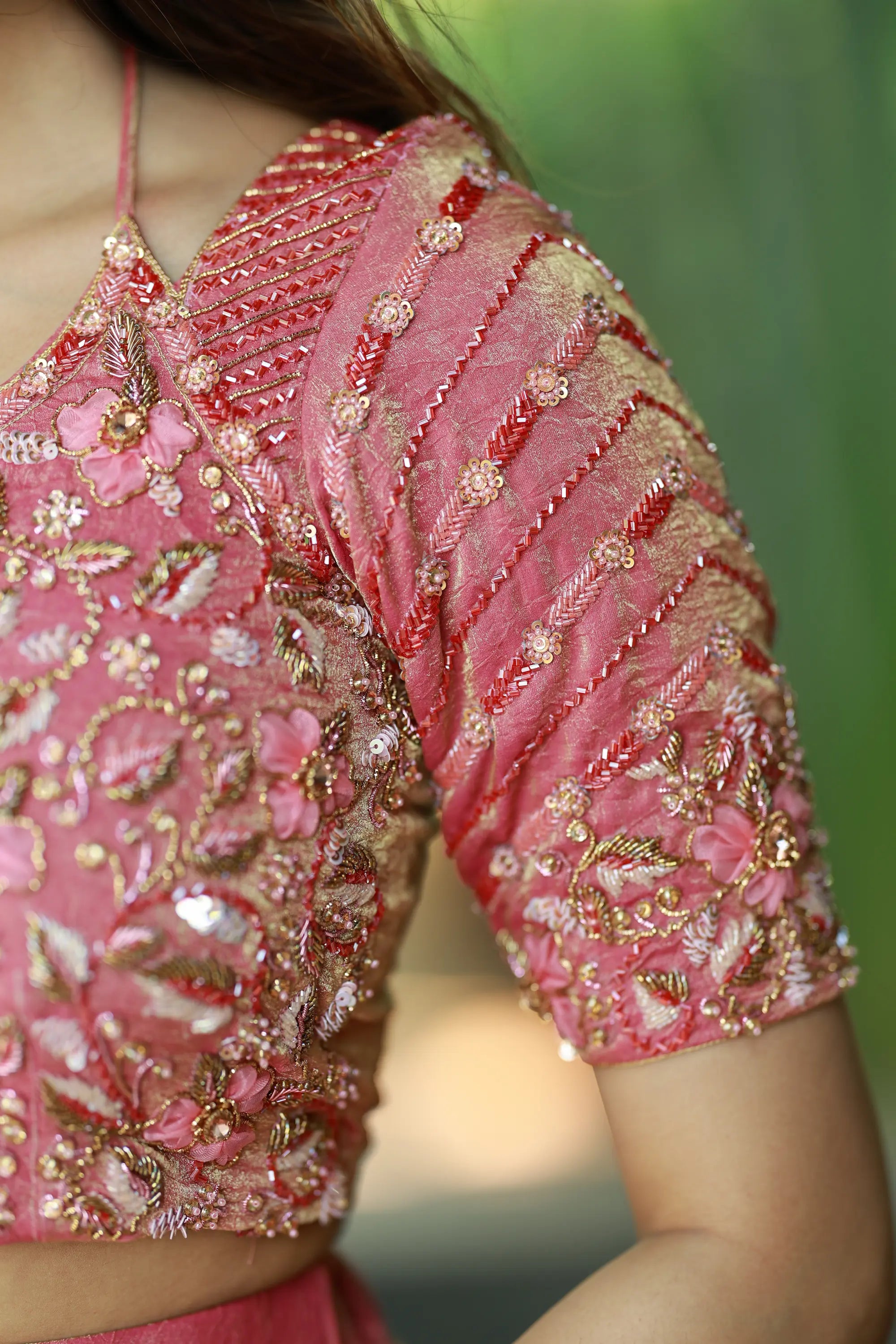 | Work Includes | Handworked zardosi embroidery on blouse |